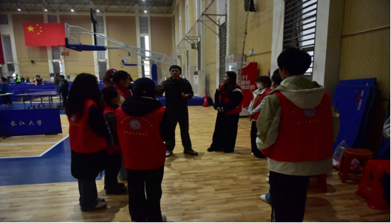 【通讯员 蔡炯镗/文 唐鑫 王等 焦铄童 耿诗涵/摄】为丰富党支部实践育人载体,切实保障教职工乒乓球赛事高效开展,11月22日至23日,长江大学校工会党支部与南苑驿站党支部在南苑体育馆联合开展“以球为媒践初心,志愿护航显担当”主题社会实践活动。校工会常务副主席杨克非、副主席钟茜,校工会党支部成员刘静、辛清、吴靖静,以及南苑驿站党支部全体支委成员出席本次活动,活动安排由南苑驿站党支部书记贺康锋同志负责。